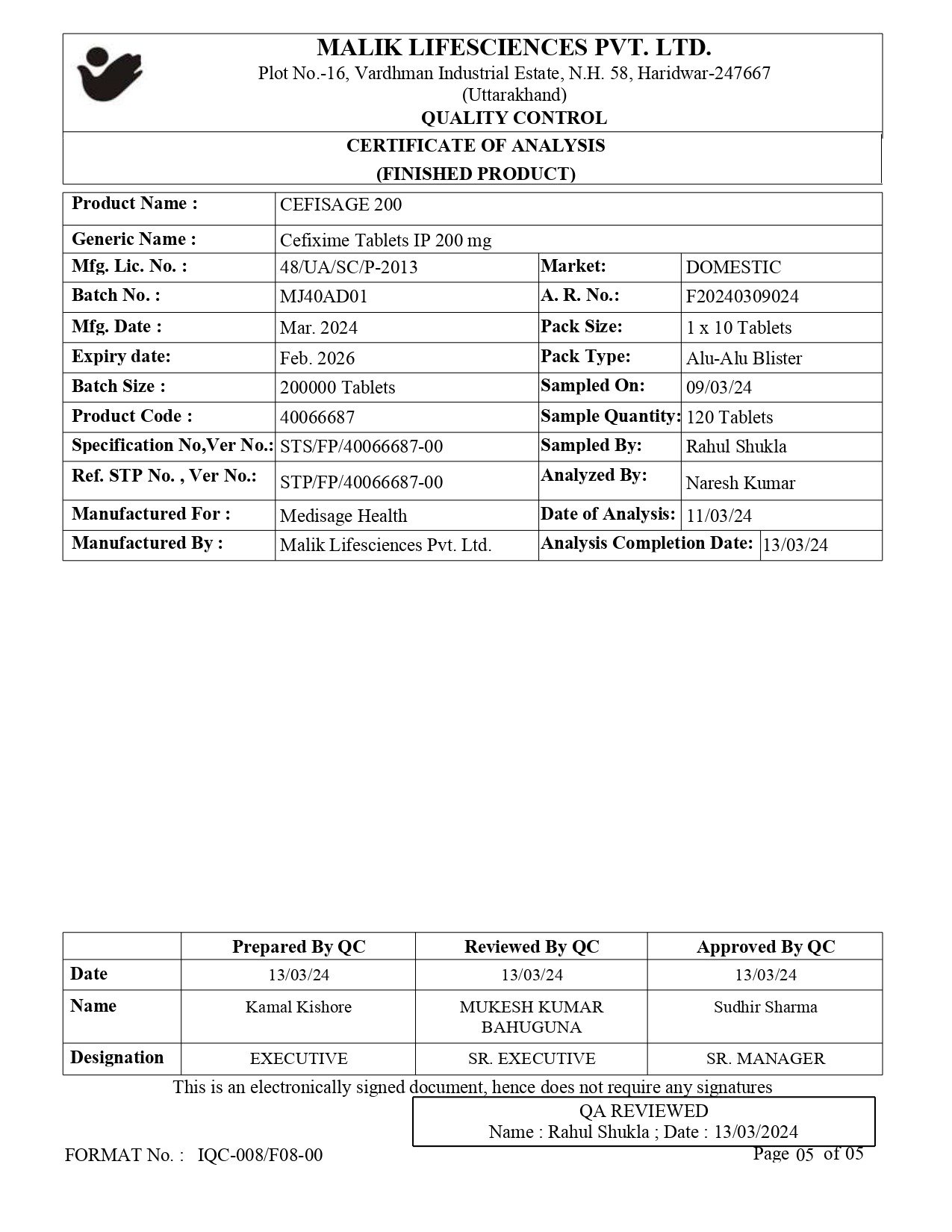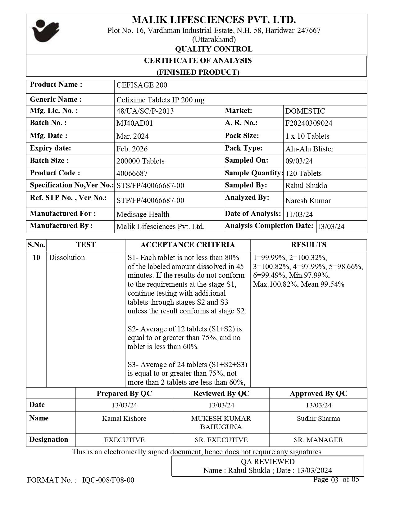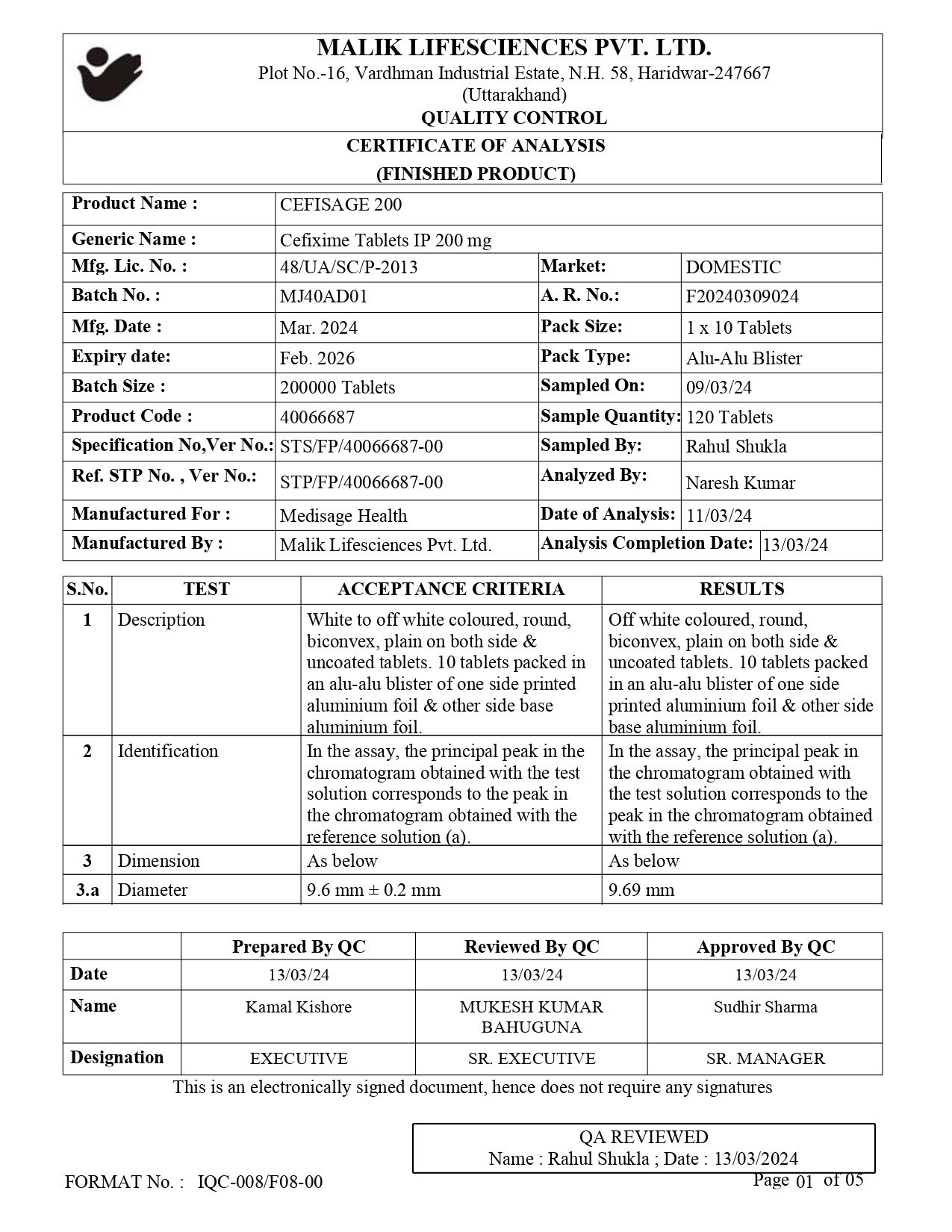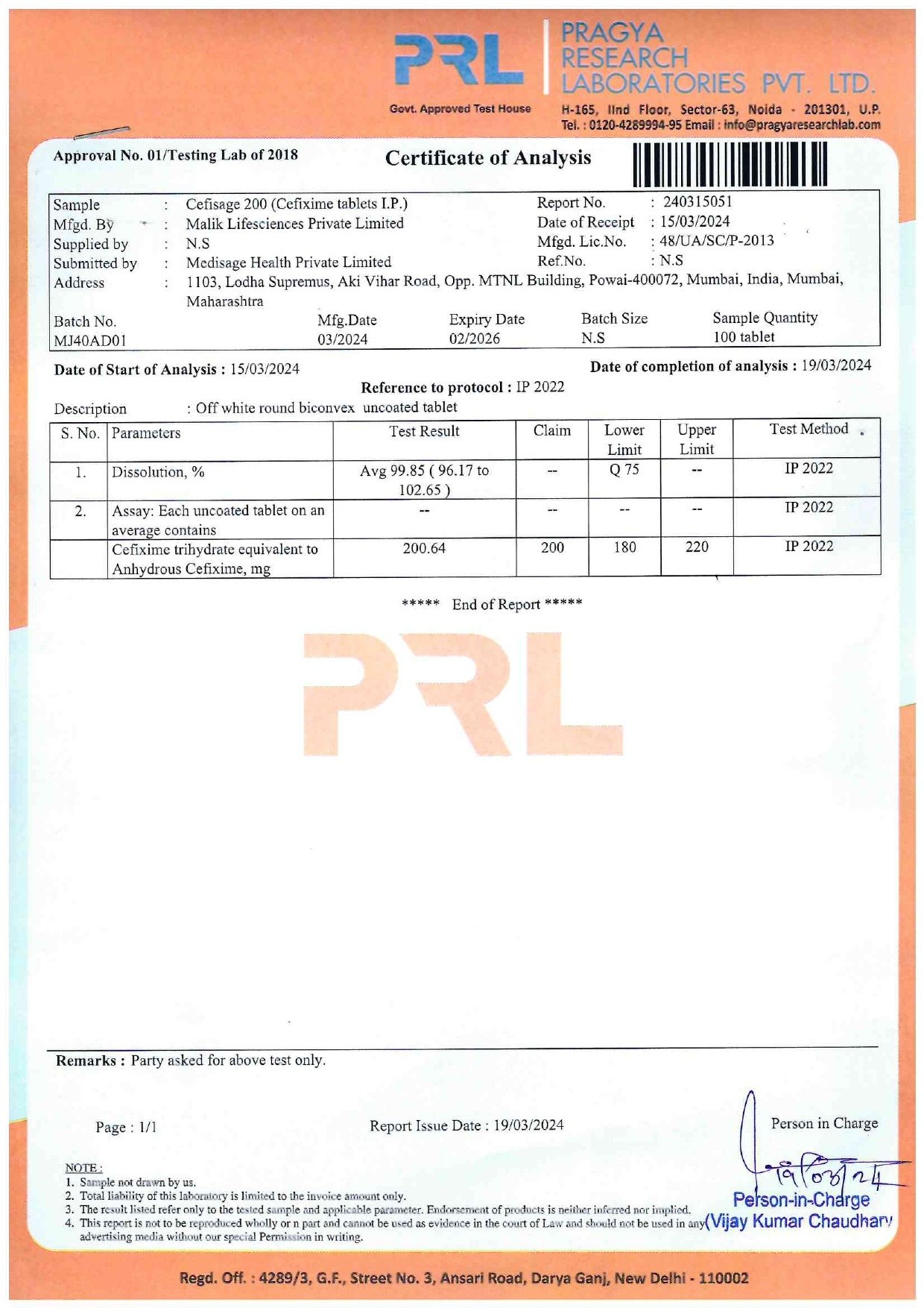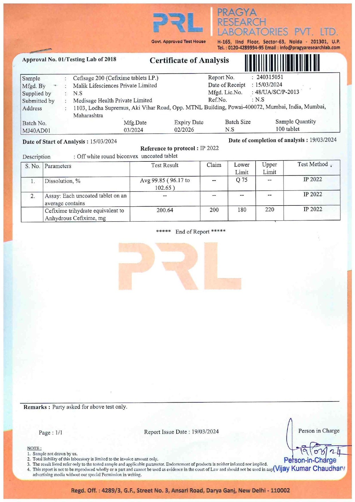 Cefixime tablets IP 200 mg