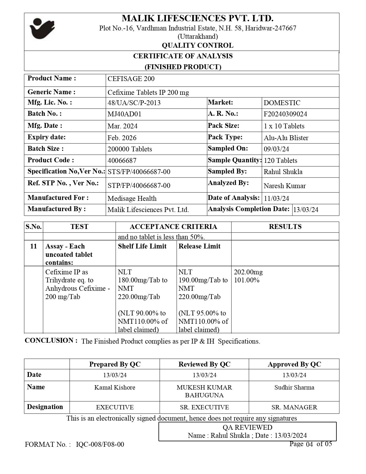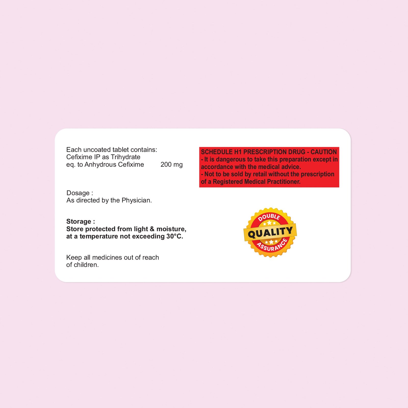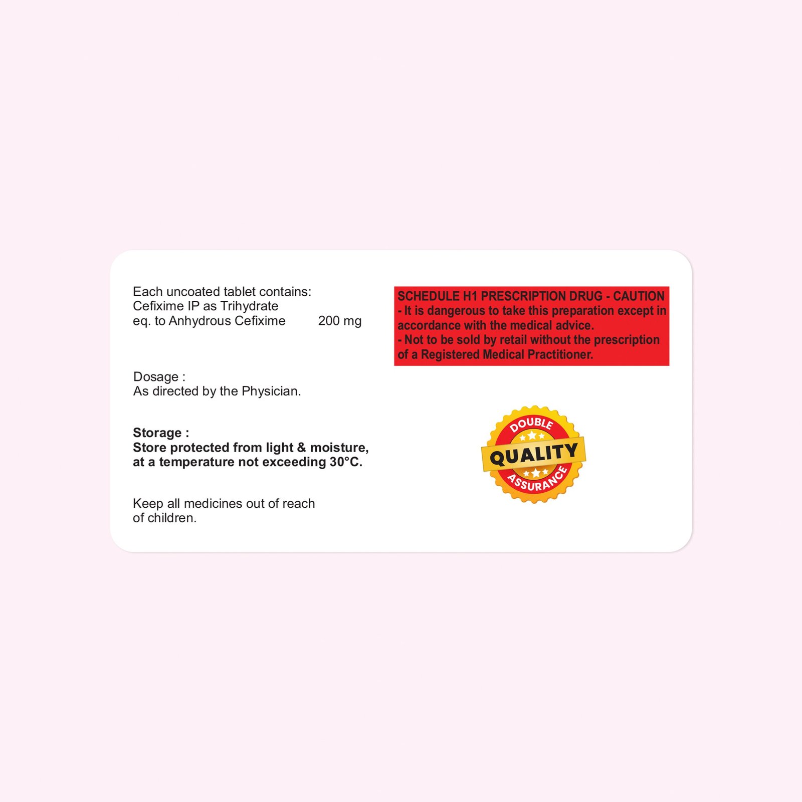 Eacg Each uncoated tablet contains: Cefixime IP as Trihydrate eq. to Anhydrous cefixime 200mg