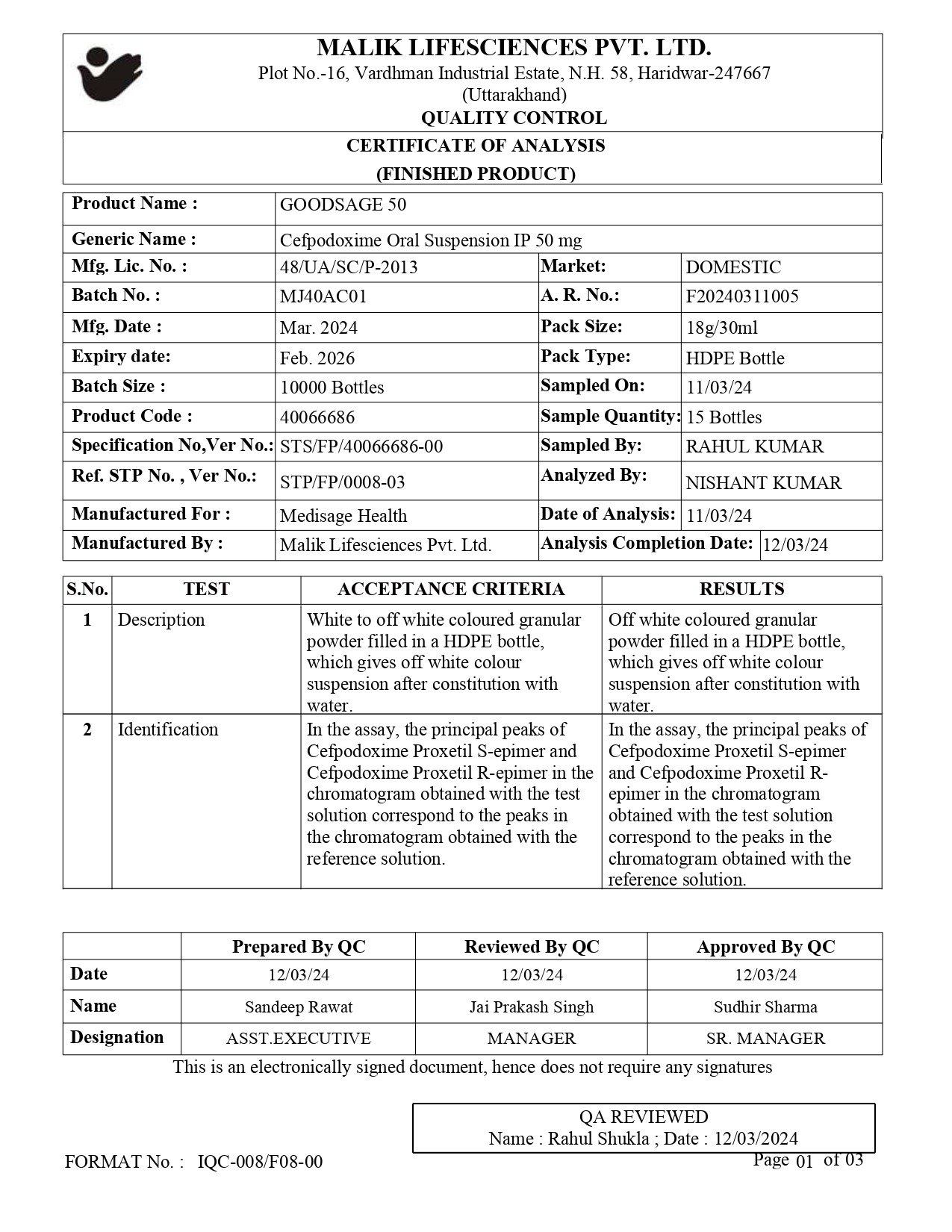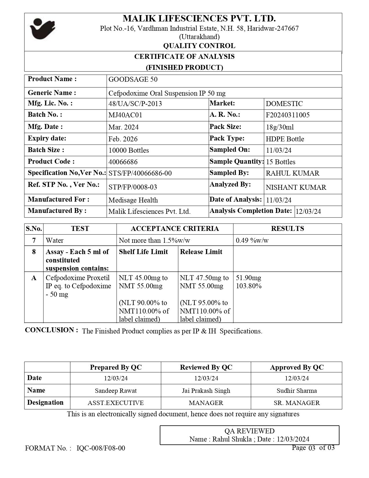 Cefpodoxime Proxetil IP