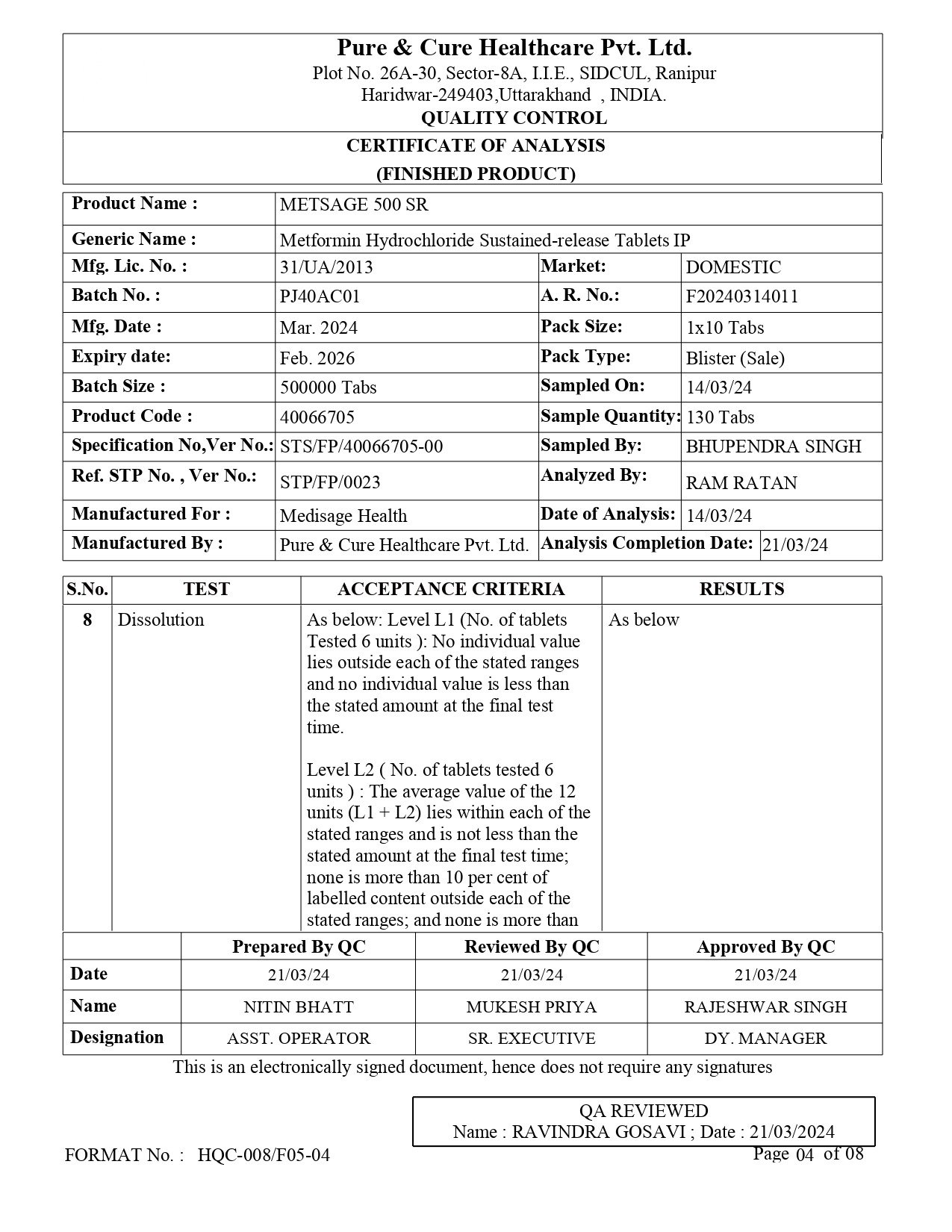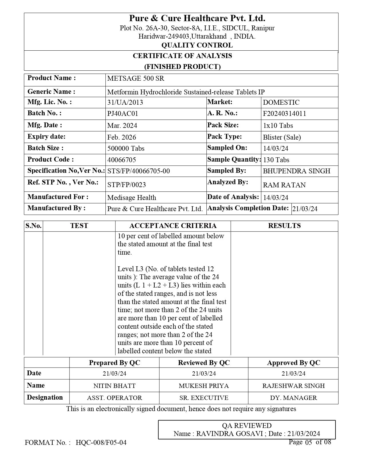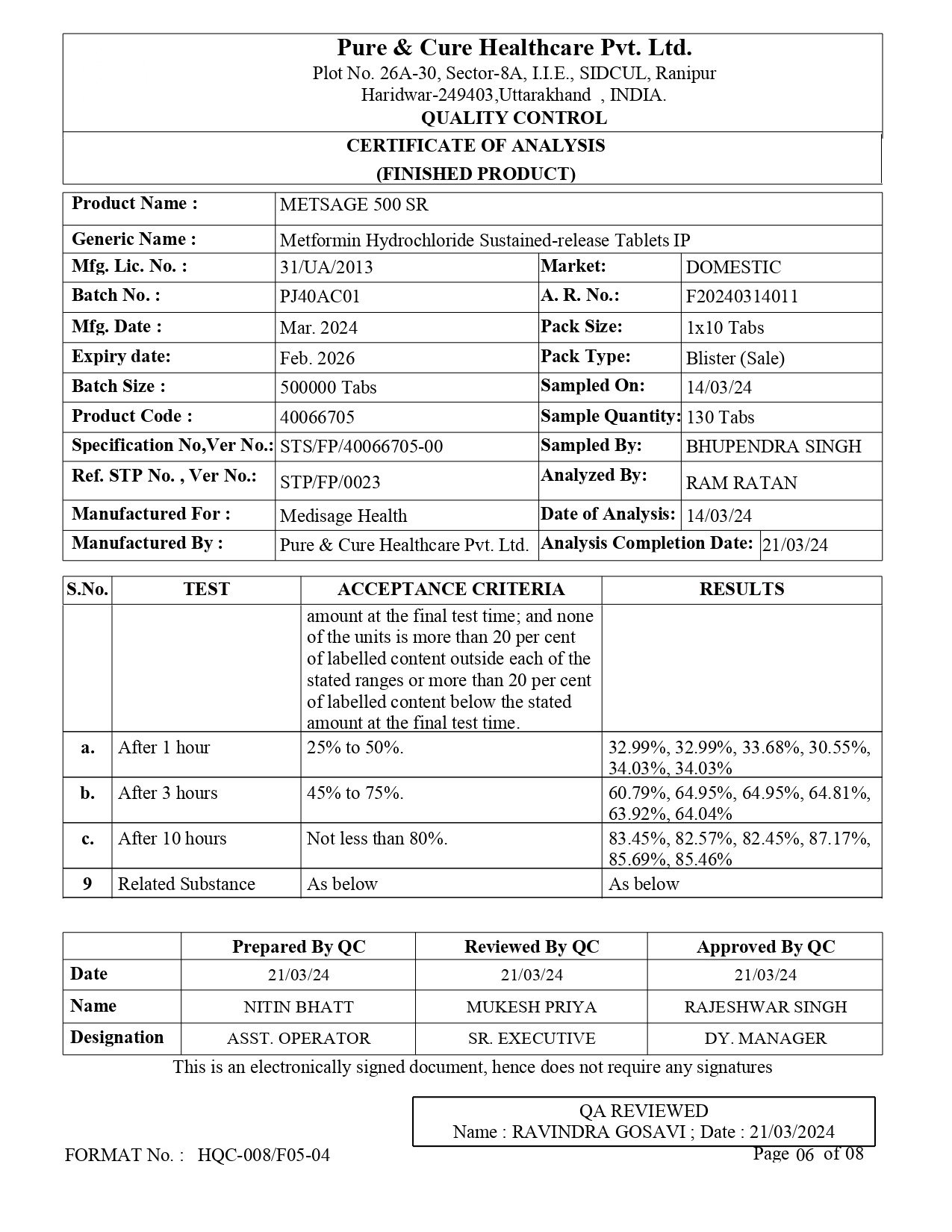 Metformin Hydrochloride sustained release tablets IP