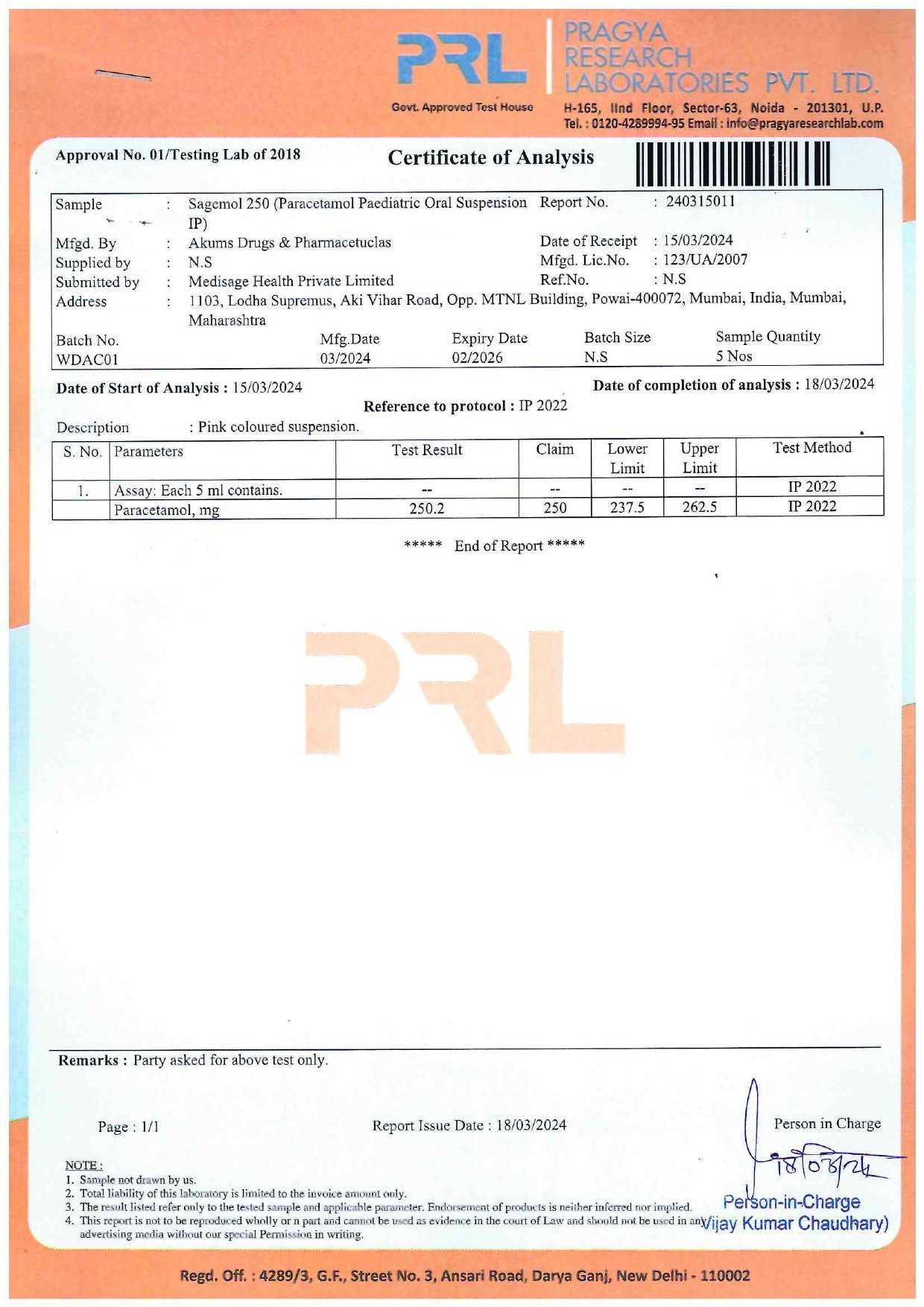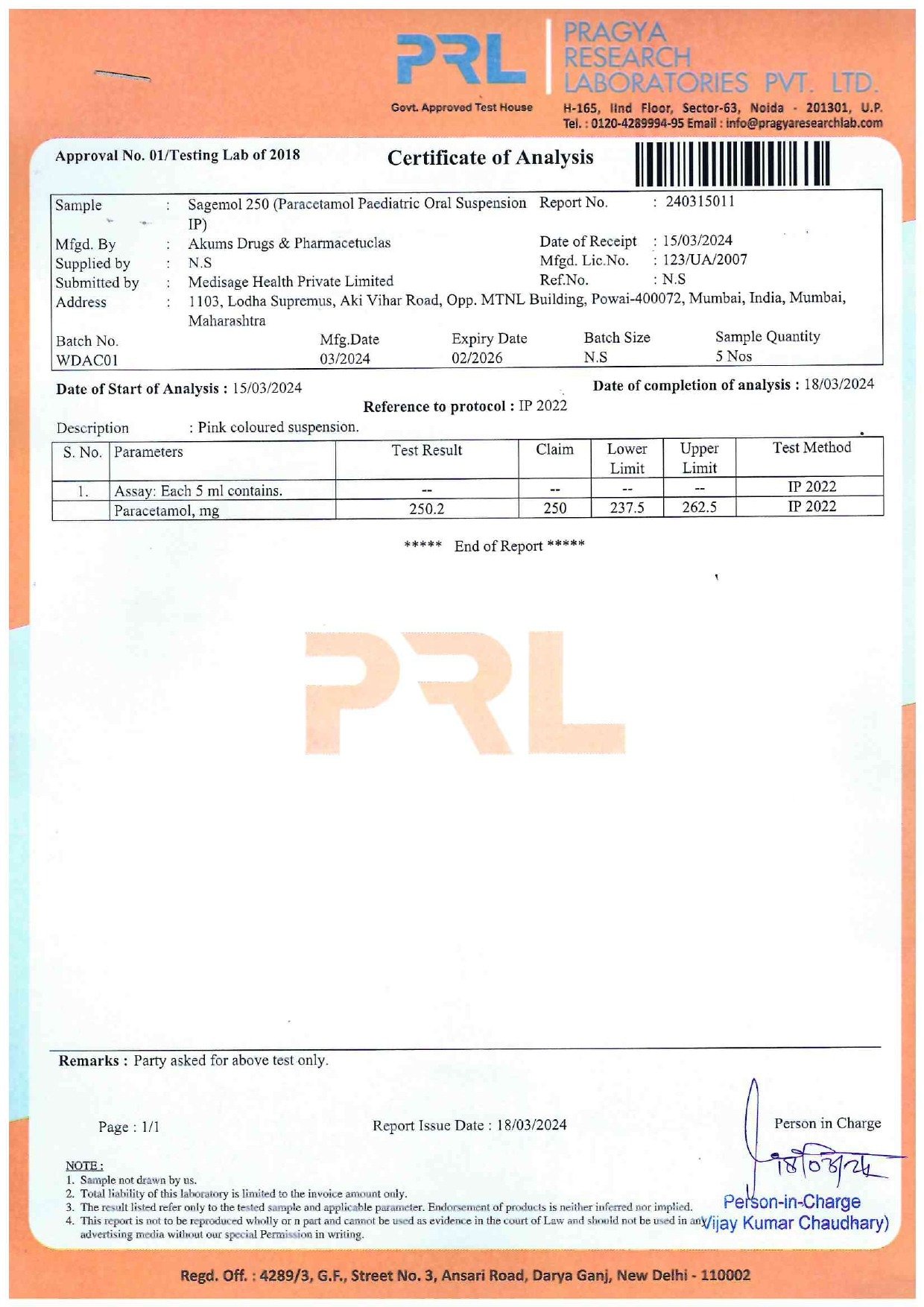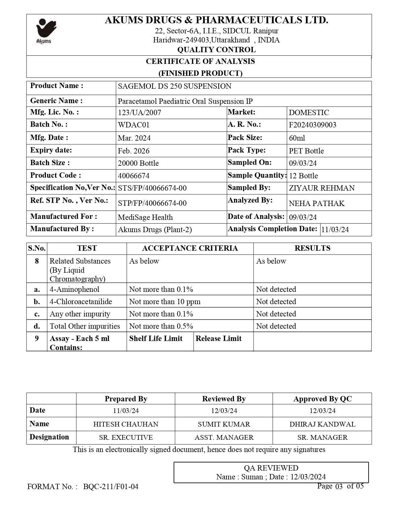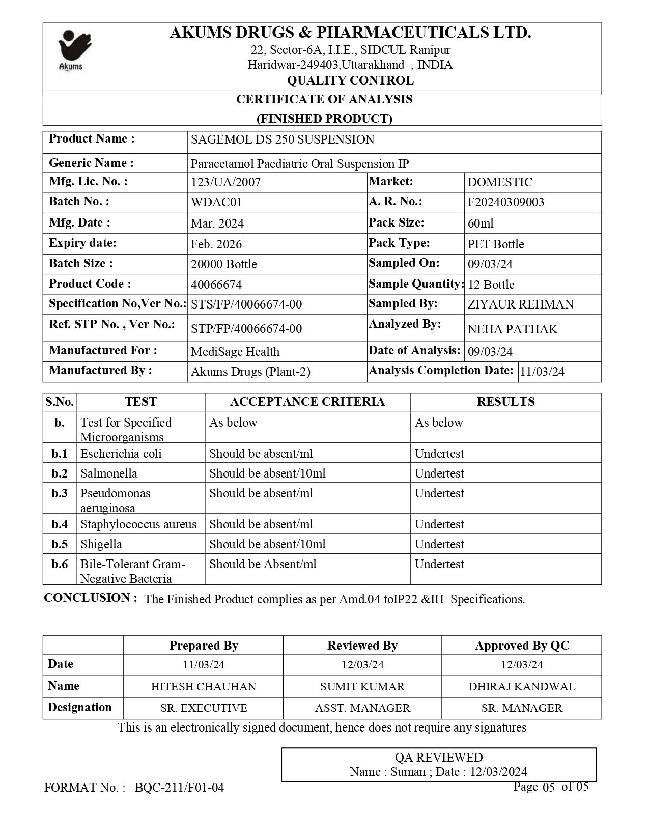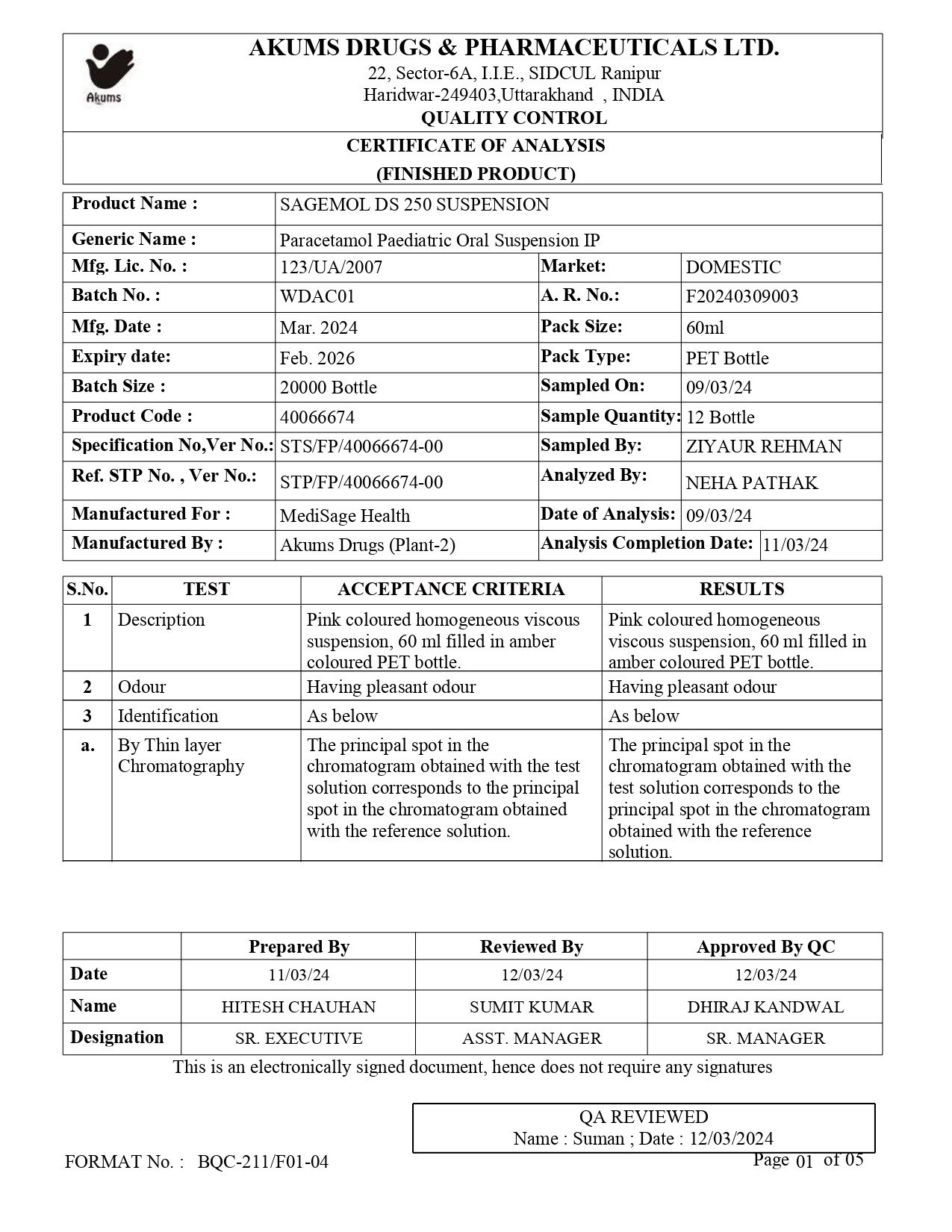 + Free ShippingParacetamol Paediatric Oral suspension IP