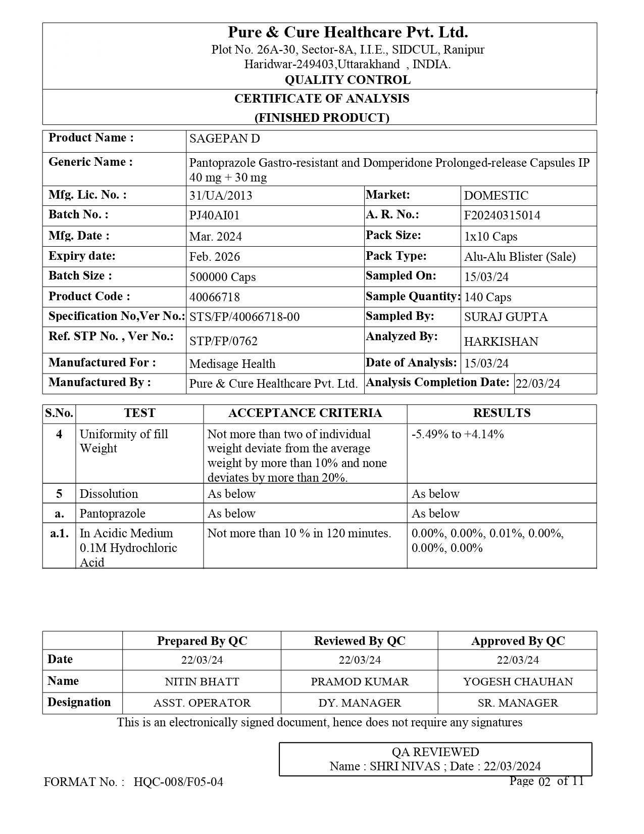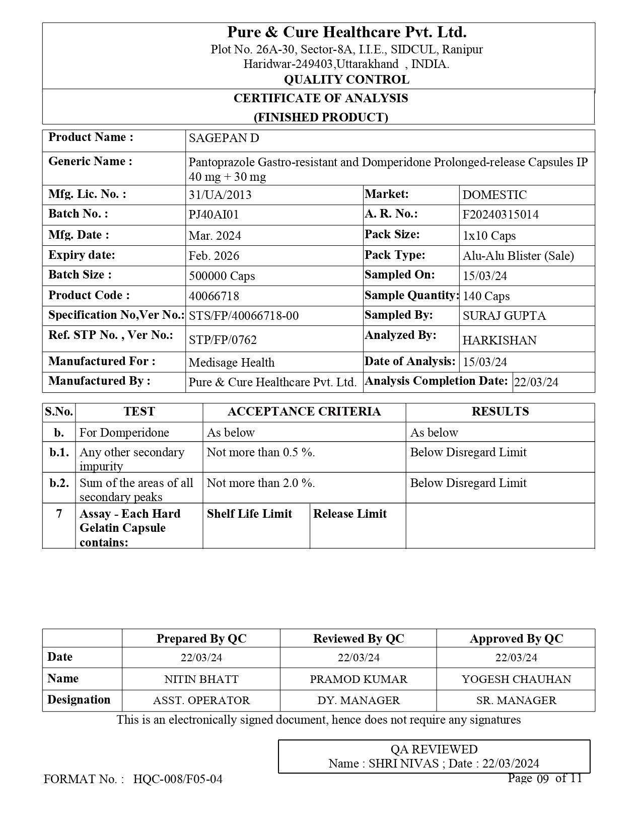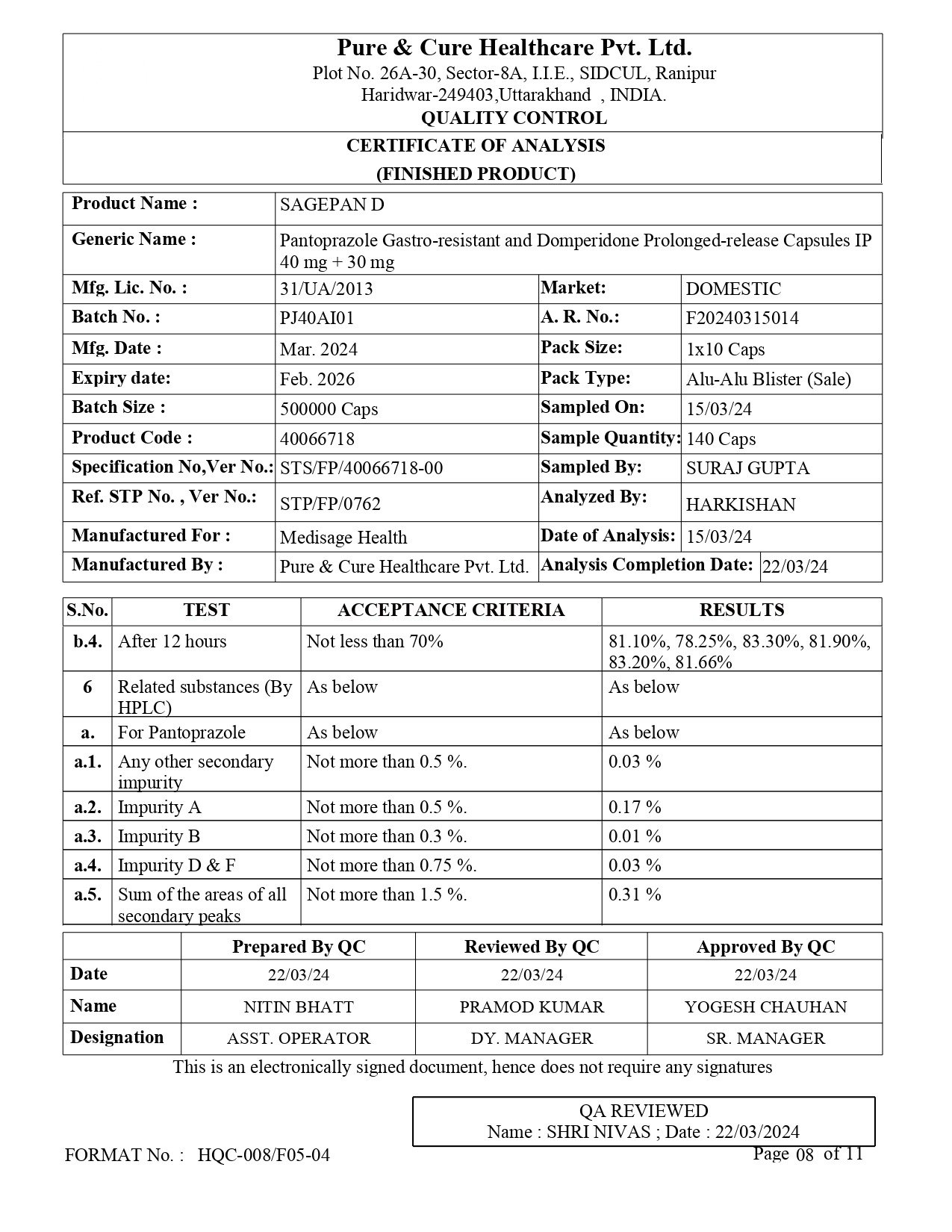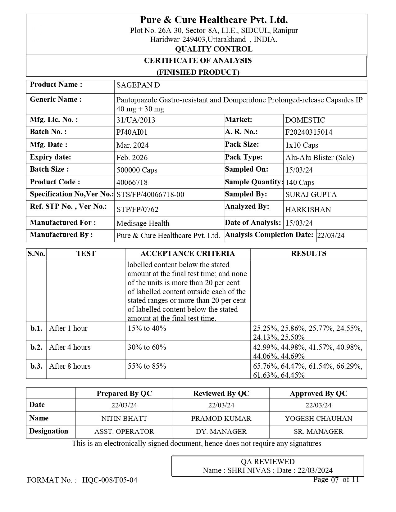 Eq. to Pantoprazole 40mg