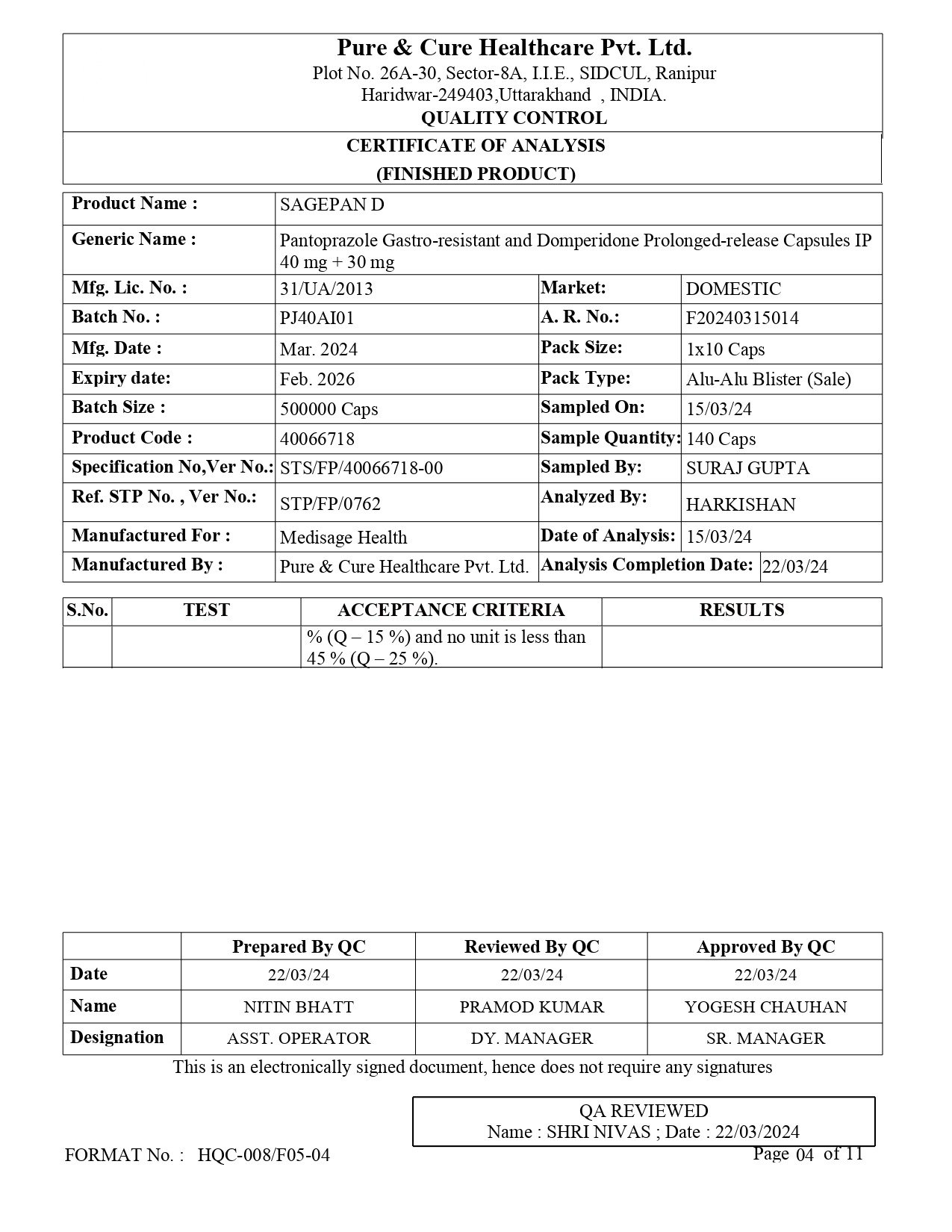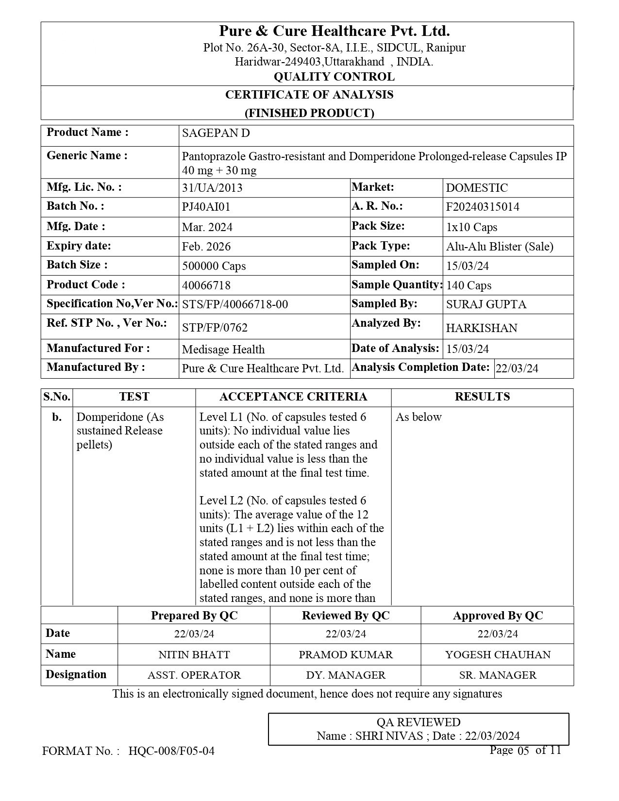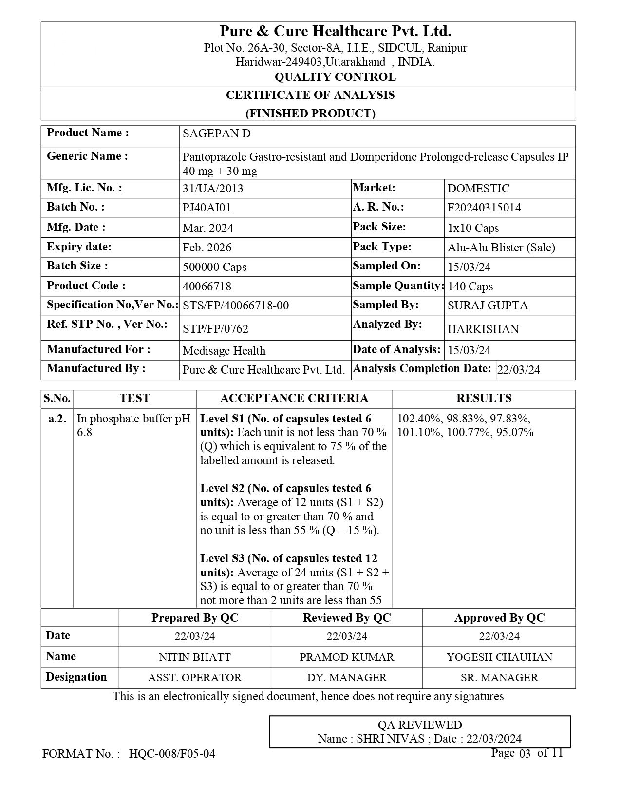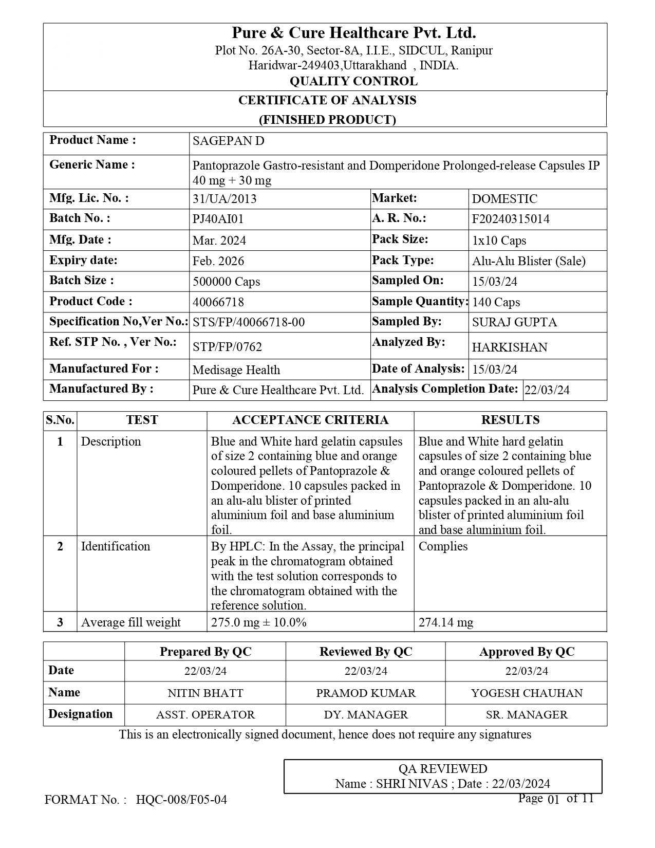 Eq. to Pantoprazole 40mg